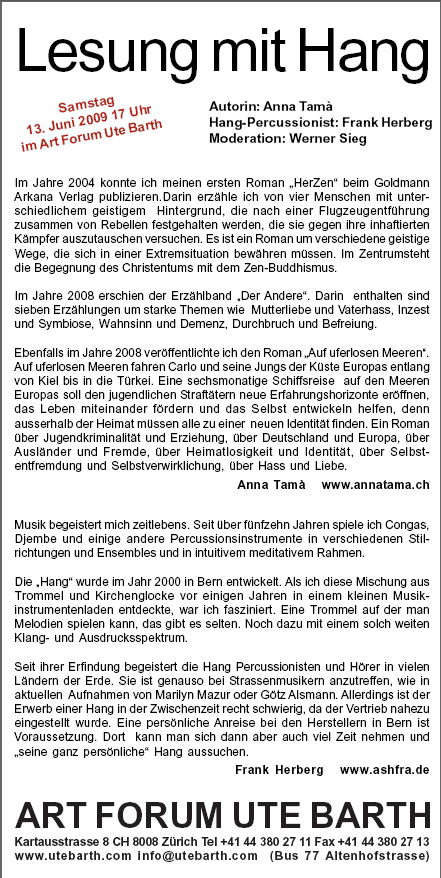 Musikalische Begleitung: Frank Herberg, Hang-Percussionist