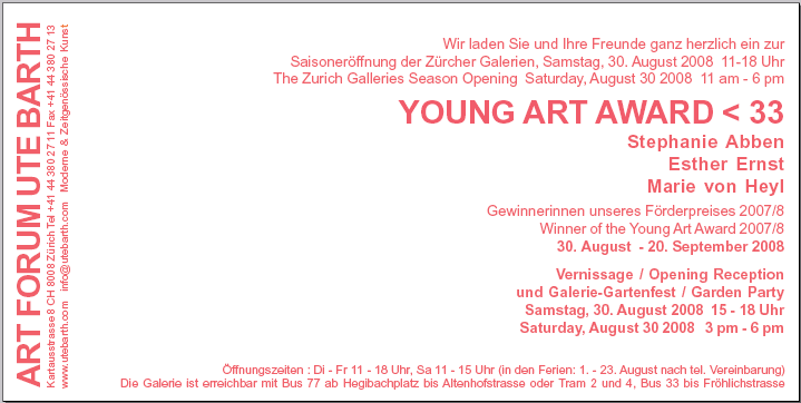 Einladung YOUNG ART AWARD < 33 2008 Stephanie Abben, Exther Ernst, Maire von Heyl                > FOTOS
