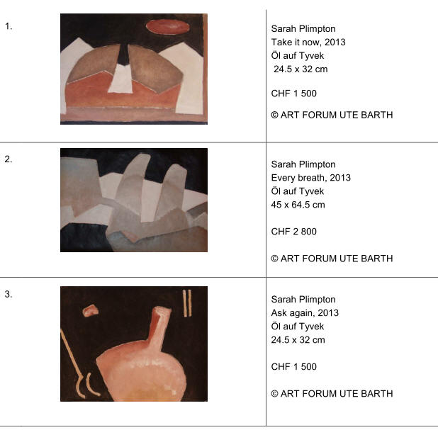 > frei zum Abdruck bei Berichten über die Galerie und Ausstellung, unter Erwähnung des copyrights Art Forum Ute Barth, Zürich